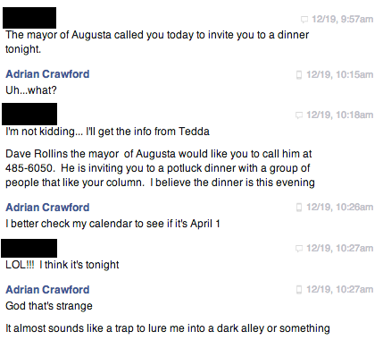 With a couple ounces of trepidation, I did call Dave Rollins back, and he said something to the effect of, “We haven’t met yet, have we?” Y’know, as if “meeting the mayor” is something that I should’ve expected to have happened already. At the grocery store or something.